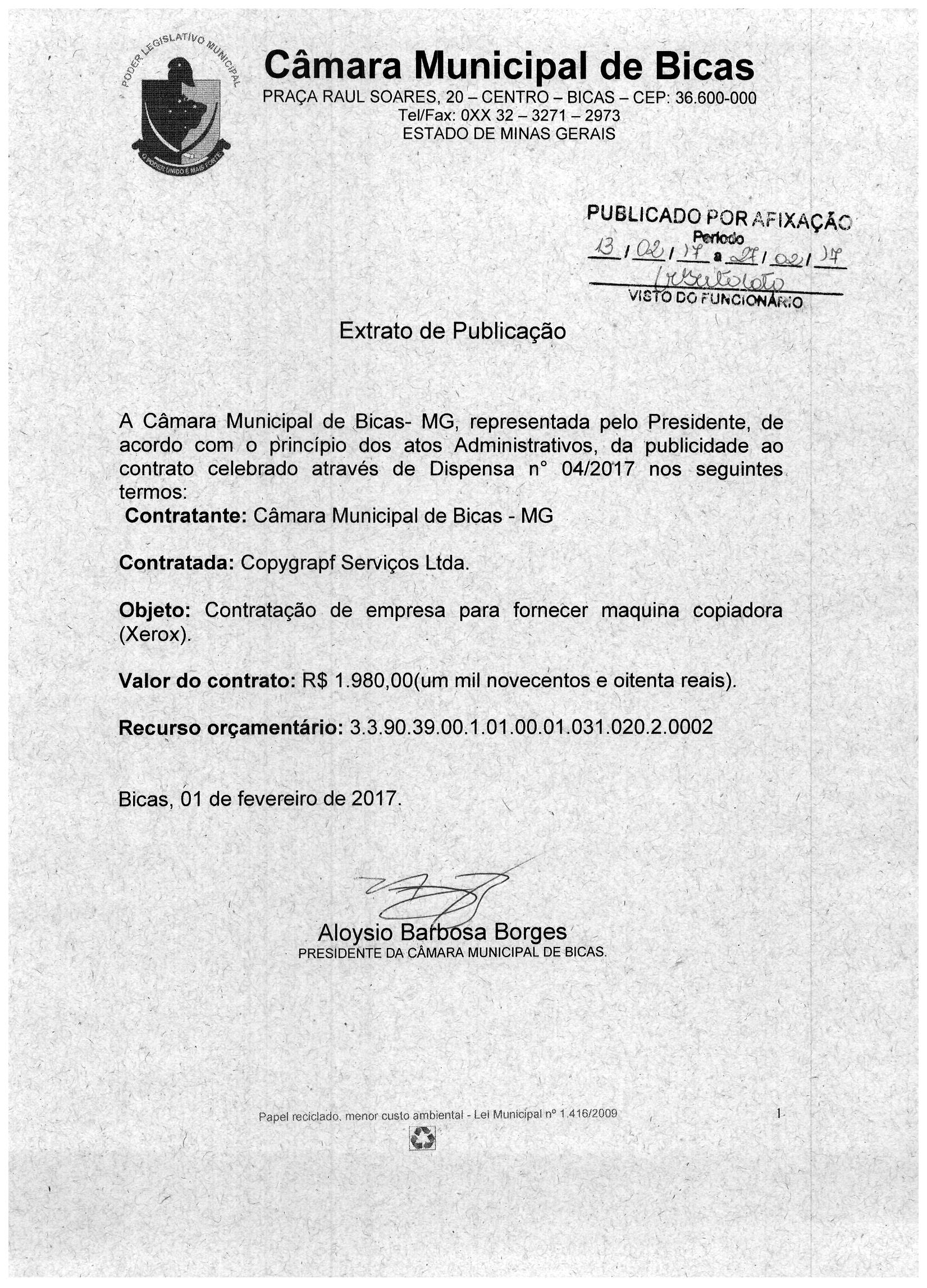 Processo n.º 04/2017 Dispensa n.º 04/2017