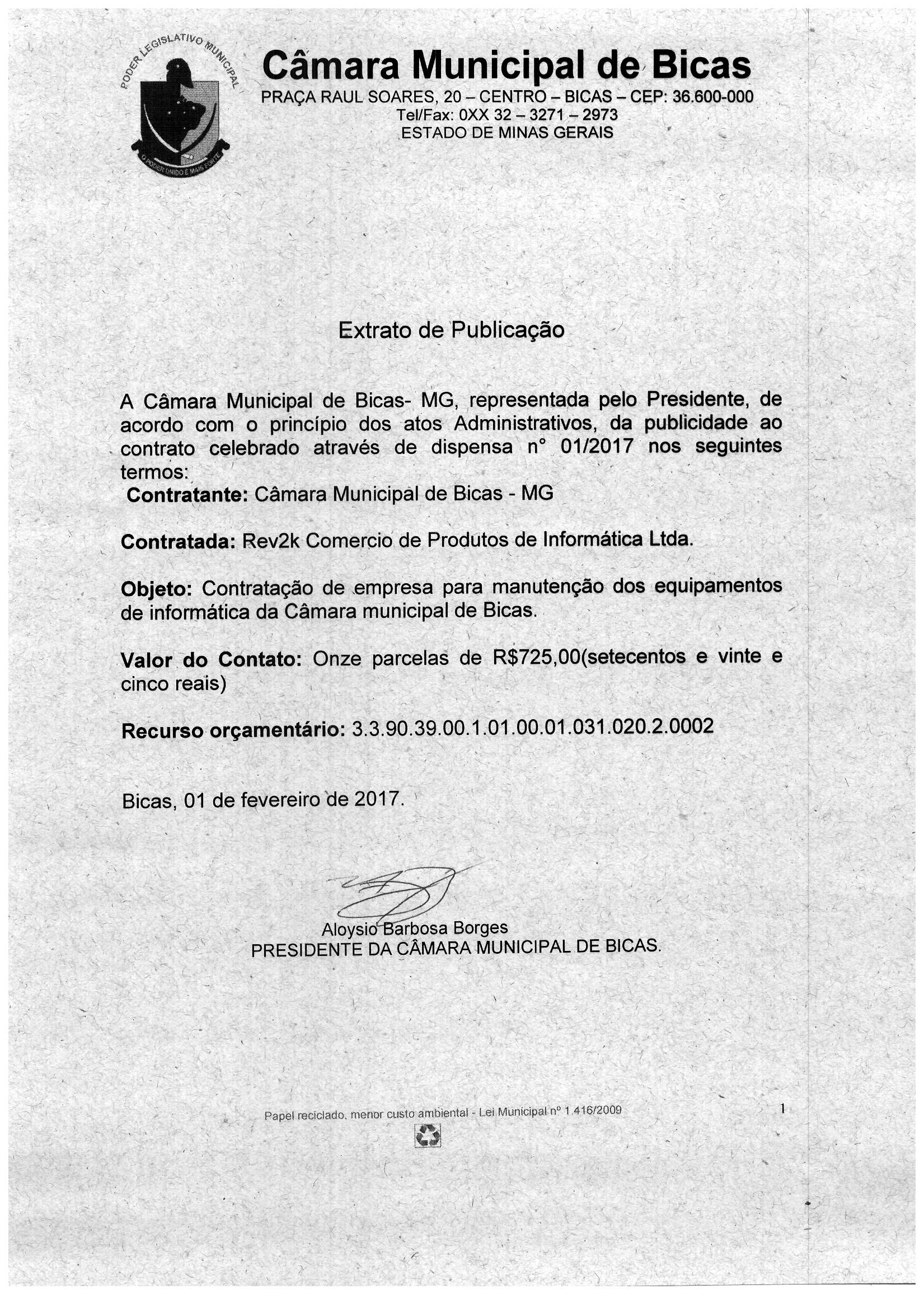 Contratação de empresa para manutenção dos equipamentos de informática da Câmara Municipal de Bicas